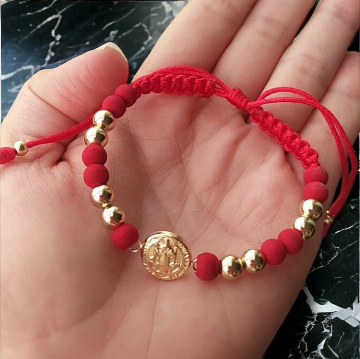 Luce elegancia y protección en una sola pieza con nuestra Pulsera San Benito Balín #4 elaborada en oro laminado 18K. Un accesorio clásico y significativo que combina estilo, brillo duradero y un profundo simbolismo espiritual.